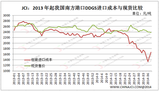 9月12日市場傳聞,近期國內(nèi)某大型貿(mào)易公司批量購入今年10月-11月和明年1月船期的美國DDGS,然而此前我國質(zhì)檢總局8月21日發(fā)通知宣布自8月18日后啟運(yùn)的貨物需提供美國官方加蓋的非MIR162轉(zhuǎn)基因證明,否則不給報(bào)檢,那么大企業(yè)DDGS新增買盤引發(fā)市場多番猜想。由于政策限制,自8月下旬月起美盤DDGS對(duì)華報(bào)價(jià)數(shù)量減少或者“有名無實(shí)”,最低曾至200美元/噸以下,上周國內(nèi)買盤事件一出外盤價(jià)格上漲,主港CNF報(bào)價(jià)240美元/噸左右,也仍比國內(nèi)進(jìn)口DDGS現(xiàn)貨低830元/噸。